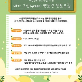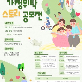 게시판 제목내용제목+내용 881 2023년 서울가정위탁지원센터 스토리 공모전 개최(4/17~5/7) l 공모주제: 우리가족의 행복한&n.. 2023-04-14 880 2023년 4월 예비일반위탁부모 양성교육 안내 * 콘텐츠 제작: 랜선 서포터즈(고나영, 김다연) 2023-04-05 879 [예결산] 2022년 세입,세출 결산(후원금품 포함) 및 사용결과보고서 우리 센터에서는 사회복지법인 및 사회복지시설 재무회계규칙 제19조(결산서.. 2023-03-31 878 임상심리치료 전문인력 육아휴직대체계약직 최종합격자 안내 서울가정위탁지원센터에서는 임상심리치료 전문인력 육아휴직대체계약.. 2023-03-30 877 서울청년문화패스 신청안내(4월 19일 ~ 4월 30일) 2023-03-29 876 임상심리치료 전문인력 육아휴직대체계약직 면접전형 합격자 안내 서울가정위탁지원센터에서는 임상심리치료 전문인력 육아휴직대체계약직에 대한&.. 2023-03-22 875 임상심리치료 전문인력 육아휴직대체계약직 면접대상자 안내 서울가정위탁지원센터에서는 임상심리치료 전문인력 육아휴직대체계약직에 대한면.. 2023-03-17 874 임상심리치료 전문인력 육아휴직대체계약직 서류전형 합격자 안내 서울가정위탁지원센터에서는 임상심리치료 전문인력 육아휴직대체계약직에 대한 .. 2023-03-13 873 자립준비 청소년을 위한 내가 그린(green) 멘토링 멘토 모집 서울가정위탁지원센터에서는 2023년 가정위탁 청소년을 위한 멘.. 2023-03-08 872 2023년 3월 예비일반위탁부모 양성교육 안내 * 콘텐츠 제작: 랜선 서포터즈(고나영, 김다연) 2023-03-06 871 2023년 서울가정위탁지원센터 자립챌린저스 합격자 발표 2023-03-06 870 서울시가정위탁지원센터 임상심리치료 전문인력 육아휴직 대체계약직 채용공고 서울특별시가정위탁지원센터에서는 어린이들이 행복한 세상을 만드는 일에 .. 2023-02-23 869 [복지] 브랜뉴디자인아카데미 자립준비청년「당신의 꿈을 응원합니다」무료수강 지원사업 신청 안내 서울시아동자립지원사업단에서는 ‘브랜뉴디자인아카데미’와 협업하여 디자인 분.. 2023-02-20 868 [복지] 서울특별시 중부기술교육원 지원 청년 및 경력단절여성 특화과정 교육생 모집 2023-02-20 867 2023년 서울가정위탁지원센터 자립챌린저스 사업 안내 2023년 서울가정위탁지원센터 자립챌린저스 사업 안내 2023-02-15 866 2023년 2월 예비일반위탁부모 양성교육 안내 2023-02-14 처음 1페이지 2페이지 3페이지 4페이지 5페이지 6페이지 7페이지 8페이지 9페이지 열린10페이지 다음 맨끝