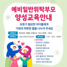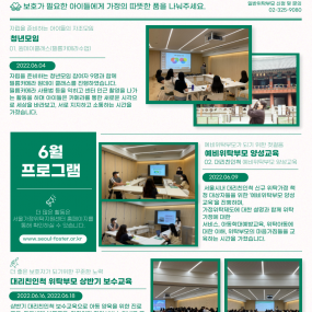 게시판 제목내용제목+내용 849 [복지정보] 서울시 미래청년기획단 청년이사비 지원사업 안내 ㅇ 사 업 명 : 2022년 서울시 청년 .. 2022-09-15 848 2022.8월 위탁가정 역량강화 프로그램 진행(아동권리교육/MBTI 교육) 2022-09-08 847 2022년 9월 예비일반위탁부모 양성교육 안내 서울가정위탁지원센터에서는 예비일반위탁부모를 모집, 발굴하고 교육하기 위해.. 2022-09-01 846 서울가정위탁지원센터 임상치료사 육아휴직 대체계약직원 채용 서류합격자 공고 서울가정위탁지원센터에서는 임상심리치료 전문인력 육아휴직대체계약직에 대한 .. 2022-08-18 845 2022.7월 센터 소식 2022-08-17 844 서초구가족센터 시범사업‘원(ONE)스텝, 원(ONE)가정’운영 □ 기 관 명 : 서초구 가족센터□ 소 재 지 : (본부) 서초구 방배로.. 2022-08-08 843 [공고]서울시가정위탁지원센터 임상심리치료 전문인력 육아휴직대체계약직 채용공고 우리 어린이재단 서울특별시가정위탁지원센터에서는 임상심리치료 전문인력 계약.. 2022-08-03 842 [공고]임상심리치료 전문인력 육아휴직대체계약직 면접 합격자 안내 우리센터에서는 2022. 08.02일자 임상심리치료 전문인력 육아휴직 대.. 2022-08-03 841 2022년 8월 예비일반위탁부모 양성교육 안내 서울가정위탁지원센터에서는 예비일반위탁부모를 모집, 발굴하고 교.. 2022-08-01 840 [공고]임상심리치료 전문인력 육아휴직대체계약직 서류전형 합격자 안내 우리센터에서는 임상심리치료 전문인력 육아휴직 대체계약직 서류 전형 합격자.. 2022-07-28 839 서초 가족센터 업무협약식 진행 2022-07-20 838 2022 위탁가정 온라인 보수교육 안내 안녕하세요, 서울가정위탁지원센터입니다.가정위탁지원센터에서는 매년 1회 위.. 2022-07-19 837 2022.6월 센터 소식 2022-07-18 836 초록우산 어린이재단 서울특별시가정위탁지원센터 임상심리치료 전문인력 육아휴직대체계약직 채용공고 어린이재단 서울특별시가정위탁지원센터임상심리치료 전문인력 육아휴직대체계약직.. 2022-07-13 835 서울특별시가정위탁지원센터 임상심리치료 전문인력 육아휴직대체계약직 면접전형 합격자 안내 서울특별시가정위탁지원센터 임상심리치료 전문인력 육아휴직대체계약직 면접전형.. 2022-07-13 834 서울특별시가정위탁지원센터 임상심리치료 전문인력 육아휴직대체계약직 서류전형 합격자 발표 서울가정위탁지원센터에서는 임상심리치료 전문인력 육아휴직대체계약직에 대한 .. 2022-07-08 처음 이전 11페이지 열린12페이지 13페이지 14페이지 15페이지 16페이지 17페이지 18페이지 19페이지 20페이지 다음 맨끝
