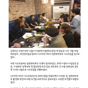 게시판 제목내용제목+내용 722 2019년 제5차 대리친인척 부모교육 2019-12-24 721 2019년 제4차 위탁부모자조모임 2019-12-04 720 [서울신문] 돌보는 아이 통장개설도 못 해줘…행정장벽에 두 번 우는 위탁모 돌보는 아이 통장개설도 못 해줘…행정장벽에 두 번 우는 위탁모출처 : 서.. 2019-12-04 719 2019, 하반기 아름다운 책자리 만들기 지원사업 2019-12-04 718 [서울신문] 보호아동 14년째 ‘찬밥 신세’...쥐꼬리 지원에 줄줄이 시설행 가정위탁 지원 및 지자체 관심이 필요하다는 내용의 보도입니다위탁아동 및 .. 2019-11-28 717 아이들이 행복한 마을 만들기 2019-11-14 716 위탁아동 상해보험안내 2019-10-28 715 [기관방문]신청방법 및 신청서 서울가정위탁지원센터에서는 가정위탁사업의 이해를 돕기위해 기관방문.. 2019-10-11 714 2019년 제3차 일반위탁부모 자조모임 2019-10-07 713 2019년 제2차 일반위탁부모 자조모임 2019-10-07 712 2019년 제5차 예비위탁부모교육 2019-10-07 711 가정위탁아동 생계비 책정 기준 완화 「국민기초생활 보장법」 개정 안내 1. 2019년 4월 23일 가정위탁 및 시설입소 아동의 경우 부양의무자.. 2019-09-24 710 가정위탁 이야기 2019-09-21 709 [MBC라디오] 어린이가행복한세상(9월) 나레이션 2019-09-04 708 [어플소개] 청소년 체팅상담 어플 - 다들어줄개 청소년 체팅 상담 어플을 소개 합니다24시간 상담원 분들이 3교대로 대기.. 2019-09-03 707 [복지정보] 국가기간·전략산업 직종훈련 1. 대상15세 이상의 구직신청자 중 미취업 상태에 있는 구직자, 비진학.. 2019-09-03 처음 이전 11페이지 12페이지 13페이지 14페이지 15페이지 16페이지 17페이지 18페이지 19페이지 열린20페이지 다음 맨끝