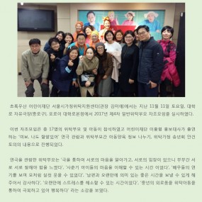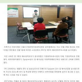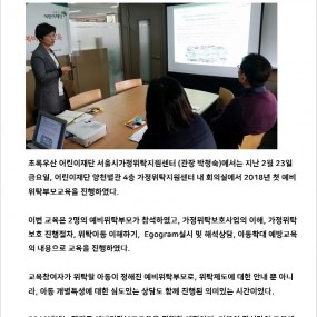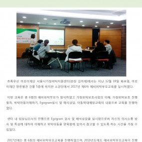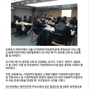 게시판 제목내용제목+내용 628 'KIA happy mobility' 캠페인-운전면허증 취득비지원사업 초록우산 어린이재단 서울시가정위탁지원센터(관장 박정숙)에서는 지난 3.. 2018-04-13 627 [세상이 품:다] 태어나자마자 외로움을 배워야 하는 아이들이 있습니다. &.. 2018-04-13 626 2018년 제2차 공무원교육 및 간담회 실시 2018-04-13 625 [국민일보 청년기고]가정위탁, 나의 울타리를 넓혀 아이들을 품어주세요 &nbs.. 2018-03-28 624 2018년 1차 운영위원회 실시 2018-03-28 623 2018년 제1차 공무원교육 및 간담회 실시 2018-03-28 622 2018년 1차 대리친인척 부모교육 실시 2018-03-28 621 <고맙습니다, 선생님> 제3회 감사편지쓰기 공모전 <고맙습니다, 선생님> 제3회 감사편지쓰기 공모전 한.. 2018-03-26 620 [예결산]2017년 2차 추경예산 및 세입세출결산(후원금품 포함) 우리 센터에서는 사회복지법인 및 사회복지시설 재무회계규칙 제19조(결산서.. 2018-03-26 619 2018년 1차 예비위탁부모교육 실시 2018-03-06 618 2018 롯데복지재단 새학기 학용품 지원 2018-03-02 617 [기관방문]신청방법 및 신청서 서울가정위탁지원센터에서는 가정위탁사업의 이해를 돕기.. 2018-02-06 616 [예산]2018년 세입세출예산 공고 우리 센터에서는 사회복지법인 및 사회복지시설 재무회계규칙 제10조(예산의.. 2018-01-02 615 제6차 예비위탁부모교육 진행 2017-12-29 614 2017년 제5차 예비위탁 부모교육 진행 2017-12-04 613 2017년 제4차 일반위탁부모 자조모임 실시 2017-12-04 처음 이전 21페이지 22페이지 23페이지 24페이지 25페이지 열린26페이지 27페이지 28페이지 29페이지 30페이지 다음 맨끝