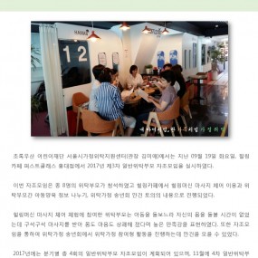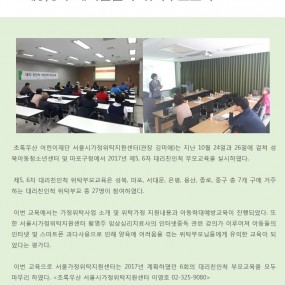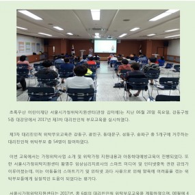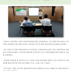 게시판 제목내용제목+내용 612 2017년 제5,6차 대리친인척 위탁부모교육 실시 2017-10-24 611 2017년 제3차 가정위탁자문위원 회의 2017-09-27 610 2017년 제3차 일반위탁부모 자조모임 실시 2017-09-19 609 [채용]어린이재단 2018년도 신입직원 정기채용 안내 [2018년도 신입직원 정기채용 안내] 가. 모집.. 2017-09-13 608 2017년 제4차 대리친인척 위탁부모교육 실시 2017-09-05 607 2017년 제4차 예비위탁 부모교육 진행 2017-08-29 606 2017년 위탁아동 자립지원 프로그램 'Dream a dream' 2017-08-11 605 서울가정위탁지원센터-지역아동센터 서울지원단 업무협약 체결 2017-08-02 604 [예산]2017년 1차 추경예산 공개 우리 센터에서는 2017년 1차 추경예산에 대해 자문위원회 .. 2017-07-21 603 롯데복지재단과 함께하는 위탁가정 주거환경 개선사업 진행 초록우산 어린이재단 서울시가정위탁지원센터(관장 김미애)는 롯데.. 2017-07-10 602 2017년 일반위탁심화교육 진행 2017-06-22 601 2017년 제2차 일반위탁부모 자조모임 진행 2017-06-22 600 2017년 제2차 가정위탁자문위원 회의 2017-06-21 599 2017년 제3차 대리친인척 위탁부모 교육 진행 2017-06-20 598 2017년 제3차 예비위탁 부모교육 진행 2017-06-14 597 2017년 가정위탁의 날 기념식 2017-05-19 처음 이전 21페이지 22페이지 23페이지 24페이지 25페이지 26페이지 열린27페이지 28페이지 29페이지 30페이지 다음 맨끝