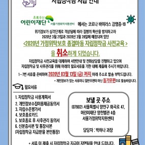 게시판 제목내용제목+내용 737 자립정착금 지급 안내 2020-03-05 736 신종 코로나바이러스 감염증 예방수칙 신종 코로나바이러스 감염증 예방수칙에 대하여 안내해 드립니다. ▶ 예방수.. 2020-02-24 735 가정위탁 보호제도 연장 및 장학금 제도 안내 2020-02-05 734 2월 진로특강 취소 및 연기 안내 안녕하세요. 서울가정위탁지원센터입니다. 2월 진행 예정이었던 진로특강이 .. 2020-02-04 733 [복지정보] 공공요금 감면서비스 안내 2020-01-30 732 2020년 1월 아이들이 행복한 마을 만들기 2020-01-29 731 디딤씨앗통장 정부매칭금 인상 안내 디딤씨앗통장 정부매칭금이 5만원으로 인상되었습니다. 2020-01-09 730 [예산] 2020년 세입세출예산 공고 우리 센터에서는 사회복지법인 및 사회복지시설 재무회계규칙 제10조 (예산.. 2020-01-09 729 2020 자립수당 및 주거지원 통합서비스 신청안내 2020-01-09 728 [복지정보] 가정위탁아동 지원 - 양육보조금, 생계급여 2020-01-08 727 2019 가정위탁 송년의 밤 2019-12-26 726 2019년 진로개발지원 성과보고회 2019-12-24 725 2019년 제8차 대리친인척 부모교육 2019-12-24 724 2019년 제7차 대리친인척 부모교육 2019-12-24 723 2019년 제6차 대리친인척 부모교육 2019-12-24 722 2019년 제5차 대리친인척 부모교육 2019-12-24 처음 이전 11페이지 12페이지 13페이지 14페이지 15페이지 16페이지 17페이지 18페이지 열린19페이지 20페이지 다음 맨끝