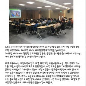 게시판 제목내용제목+내용 657 2018년 10월 아이들이 행복한 마을 만들기 진행 2018-10-31 656 2018년 제7차 대리친인척 부모교육 실시 2018-10-31 655 2018년 제6차 대리친인척 부모교육 실시 2018-10-31 654 [2018년 제7차 공무원교육 실시] 2018-10-30 653 [2018년 제6차 공무원교육 실시] 2018-10-30 652 2018년 5차 대리친인척 부모교육 2018-09-28 651 2018년 4차 대리친인척 부모교육 4차 대리친인척 부모교육 2018-09-28 650 2018년 제3차 일반위탁부모 자조모임 [일반위탁 자조모임] 2018-09-28 649 2018년 2차 일반위탁 보수교육 [일반위탁 심화교육] 2018-09-28 648 [2018년 제5차 공무원교육 실시] [제5차 공무원교육 실시] 2018-09-28 647 [2018년 제4차 공무원교육 실시] [제4차 공무원교육 실시] 2018-09-28 646 자립프로그램 Dream a Dream 실시 2018-08-13 645 [양식] 자립기술계획서, 자립기술평가서 보건복지부에서는 2013년부터 아동복지법 제39조에 의거하여 위탁아동의 .. 2018-07-19 644 [예산]2018년 1차 추경예산 공개 우리 센터에서는 2018년 1차 추경예산에 대해 운영위원회 보고(2018.. 2018-07-19 643 [서울가정위탁지원센터]2018년 제2차 운영위원회 실시 2018-07-03 642 [2018년 아동수당 시행]가정위탁보호아동 신청 관련 주요 내용 아동수당 만6세 미만 아동의 양육부담을 덜고, 아동의 기본적인 권리와 복.. 2018-06-22 처음 이전 21페이지 22페이지 23페이지 열린24페이지 25페이지 26페이지 27페이지 28페이지 29페이지 30페이지 다음 맨끝